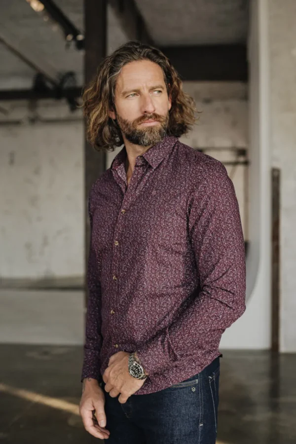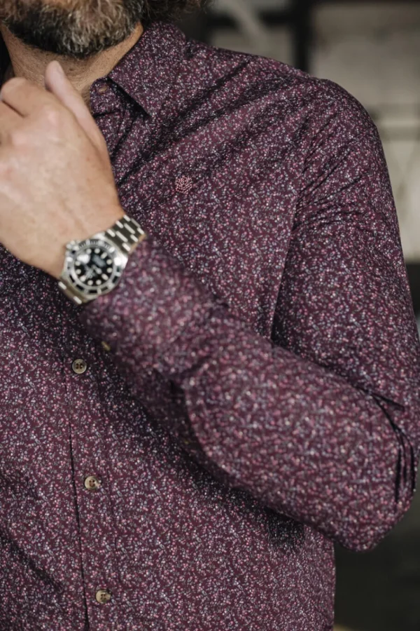 • Matière non stretch,à motif fleuris dans les tons bordeux vert et bleu