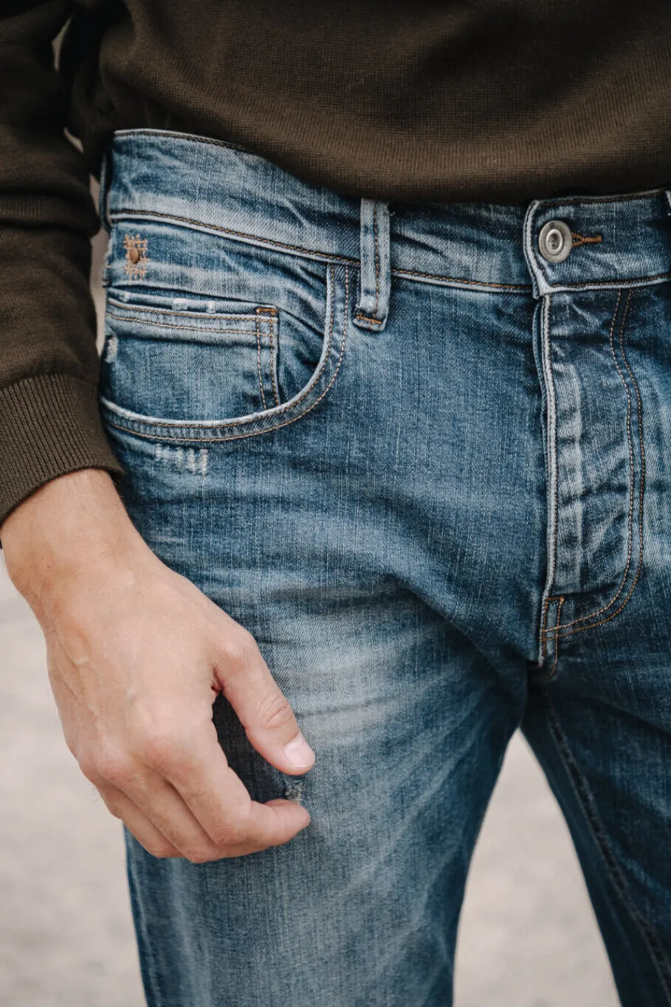 Détail de rivet coloré devant Pinces sur genoux Découpes fantaisie au dos