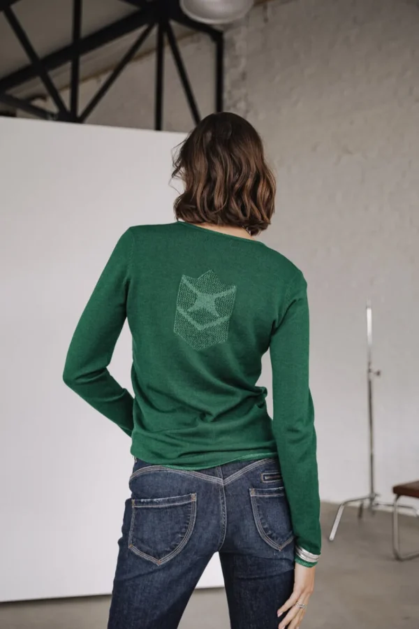 Icône milieu dos en point « »pointelle » » dans un fil métallisé