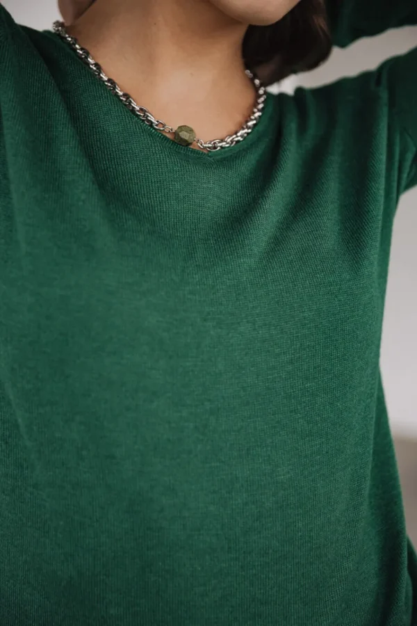 Détail de fil métallisé le long de l’encolure, du bas de vêtement et des poignets