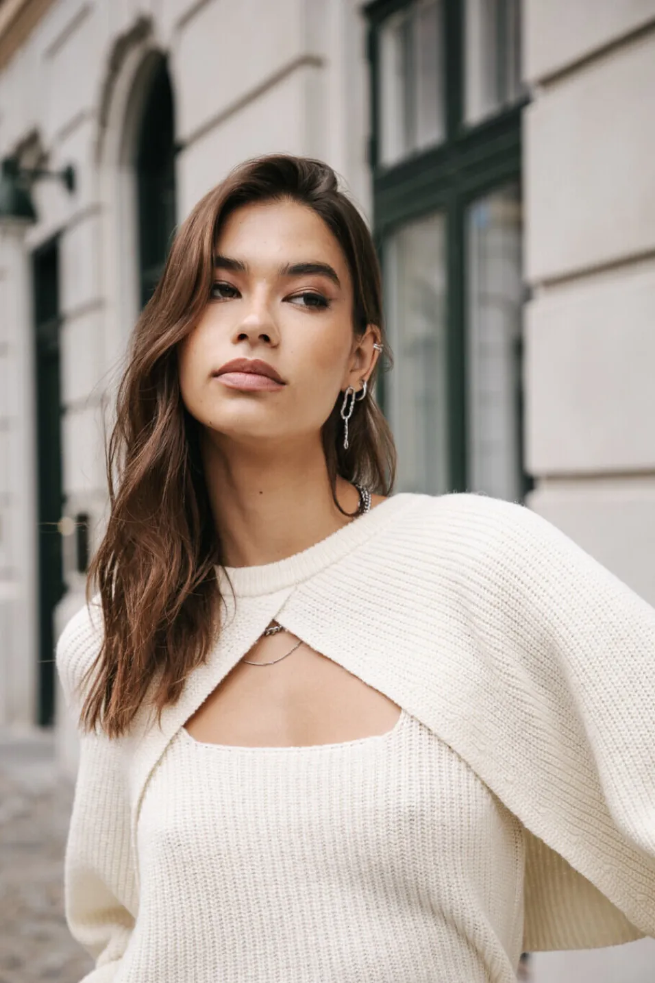 • Twin set en maille =pull court entièrement cotelé dans une maille hiver douce