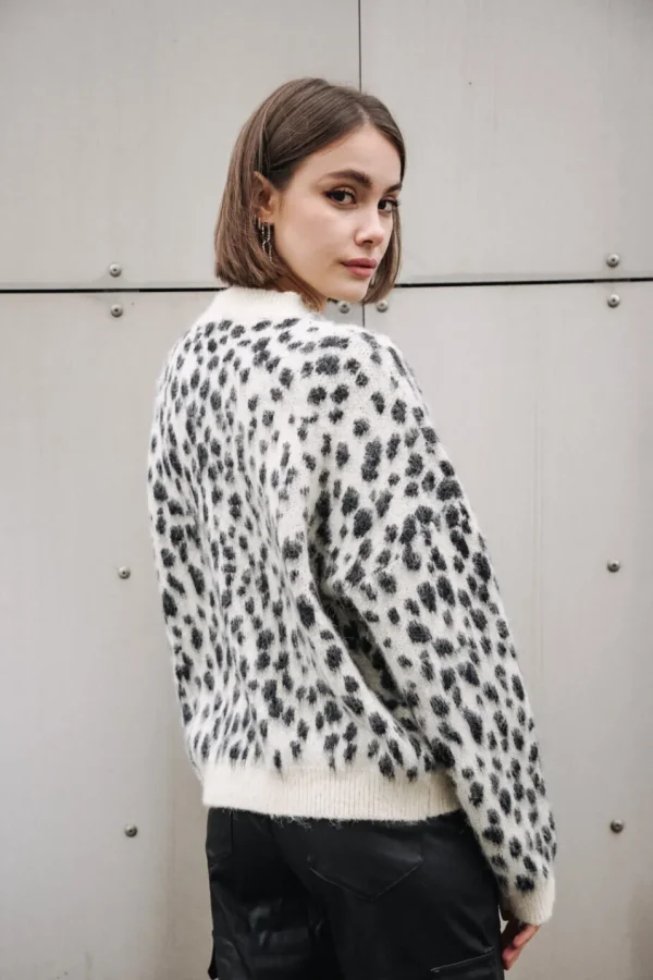 • Pull manches longues dans une maille jacquard chaleureuse et douce à motif animal bicolor