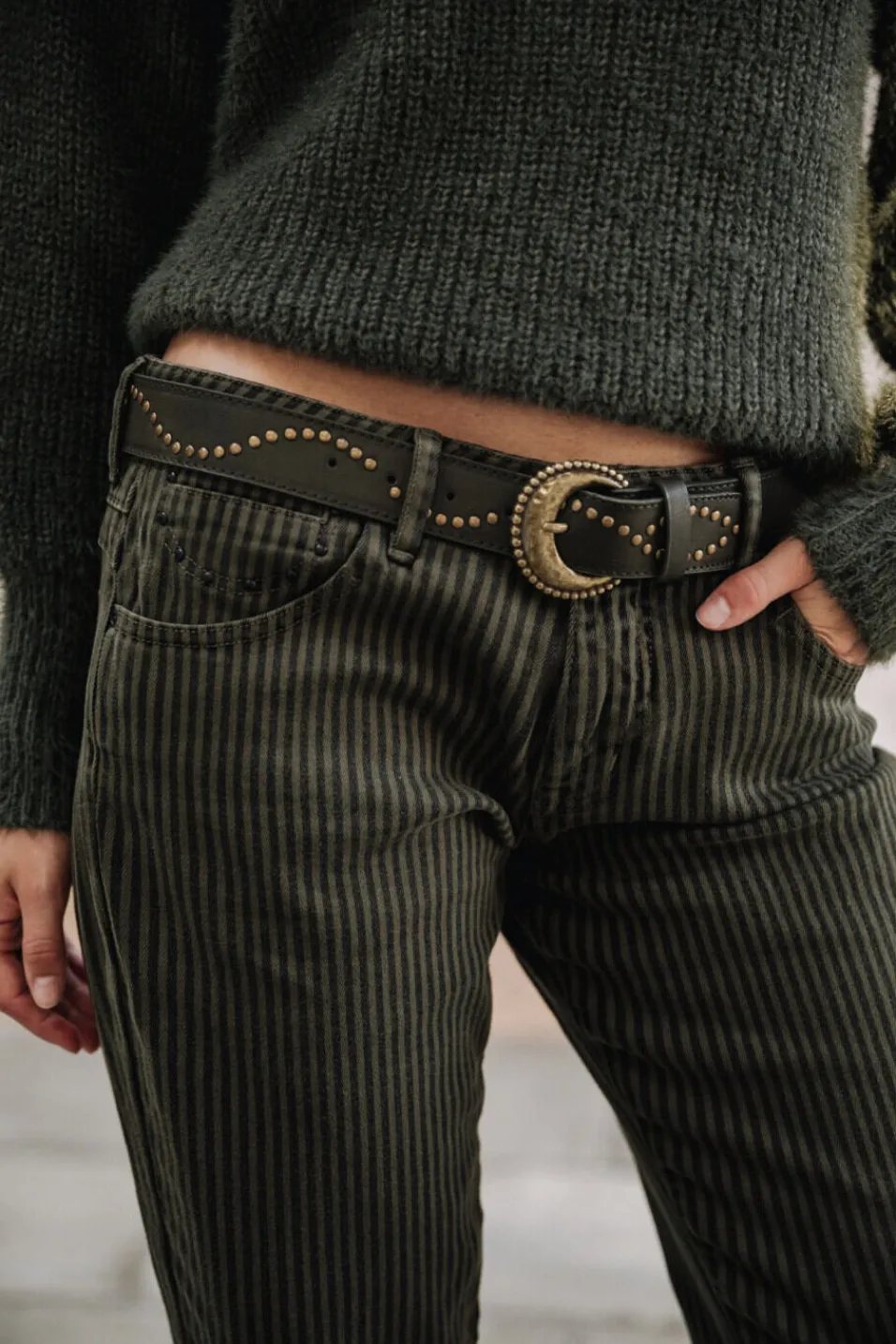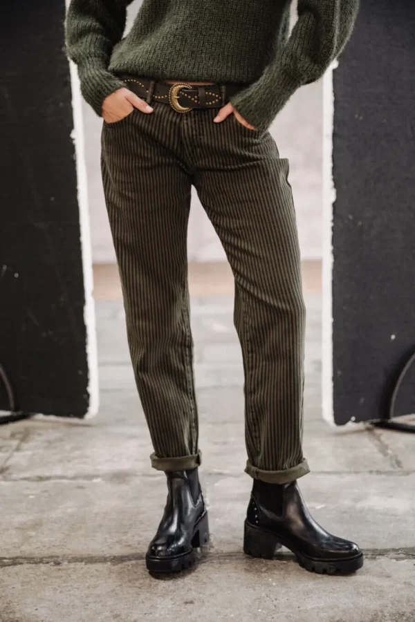 • Matière twill stretch, à rayues dans les tons kaki