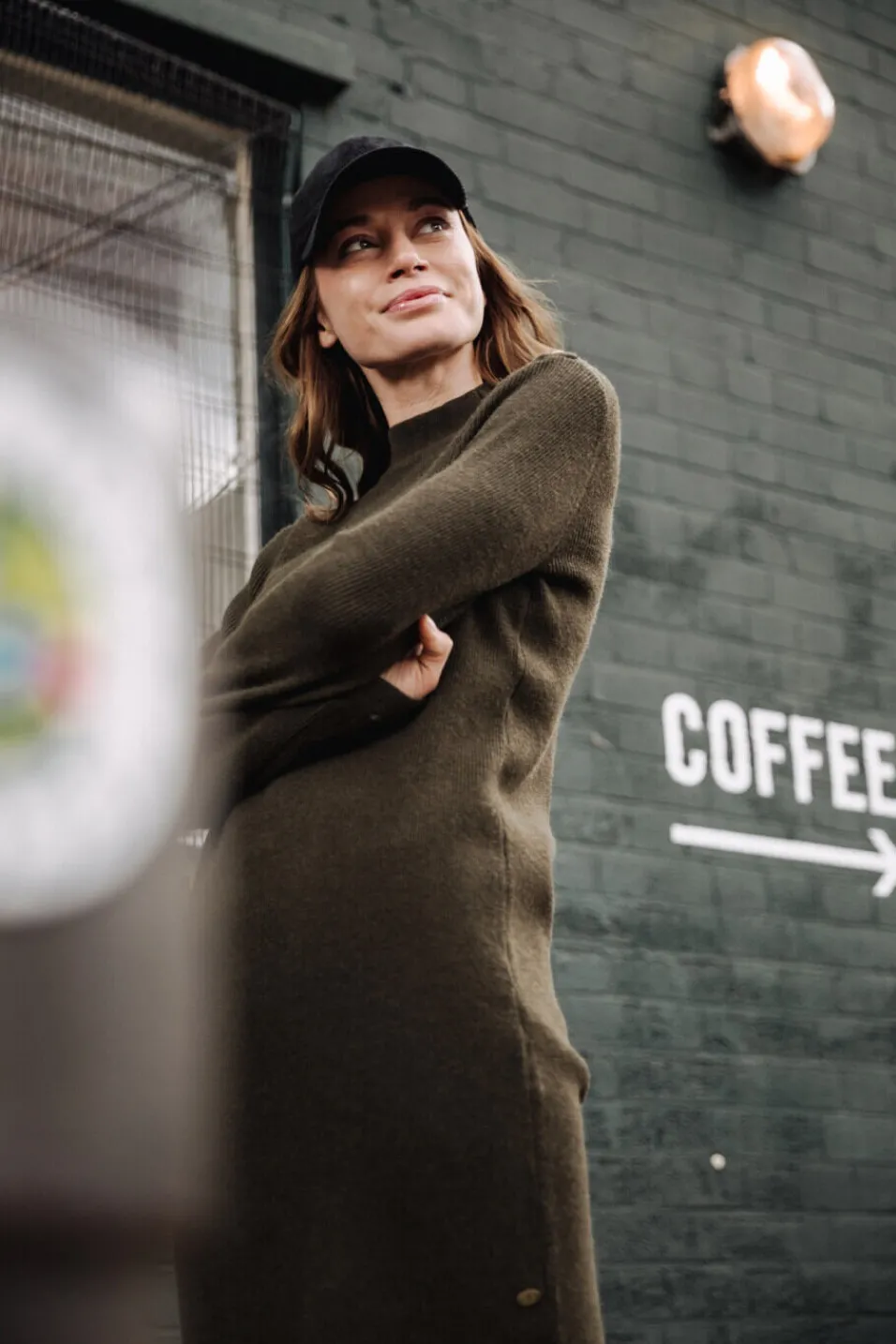 • Robe droite à manches longues dans une maille unie, fine et douce