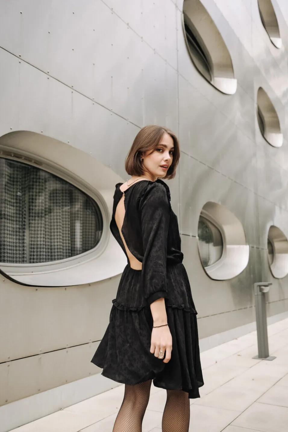 Robe à manches longues dans une matière en viscose jacquard unie et fluide