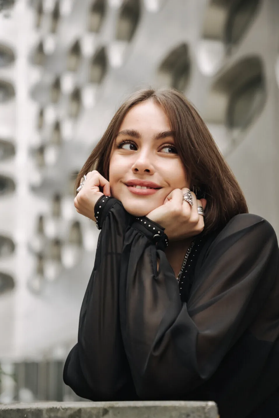 • Robe effet cache-cœur manches longues ressérées à la taille dans un voile légèrement transparent uni