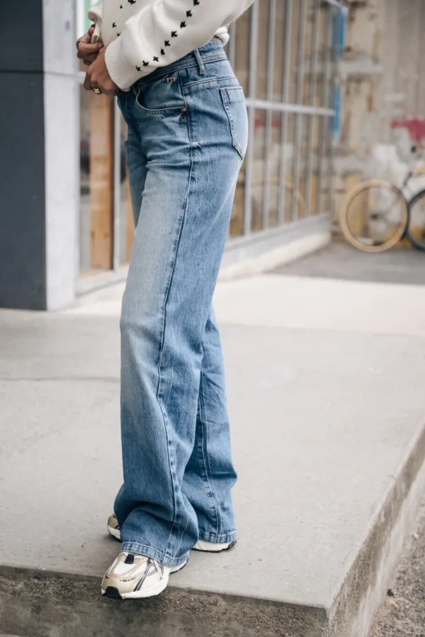 • Coupe large, flare (pattes d’éléphants)• Hauteur de taille normale, effet taille basse