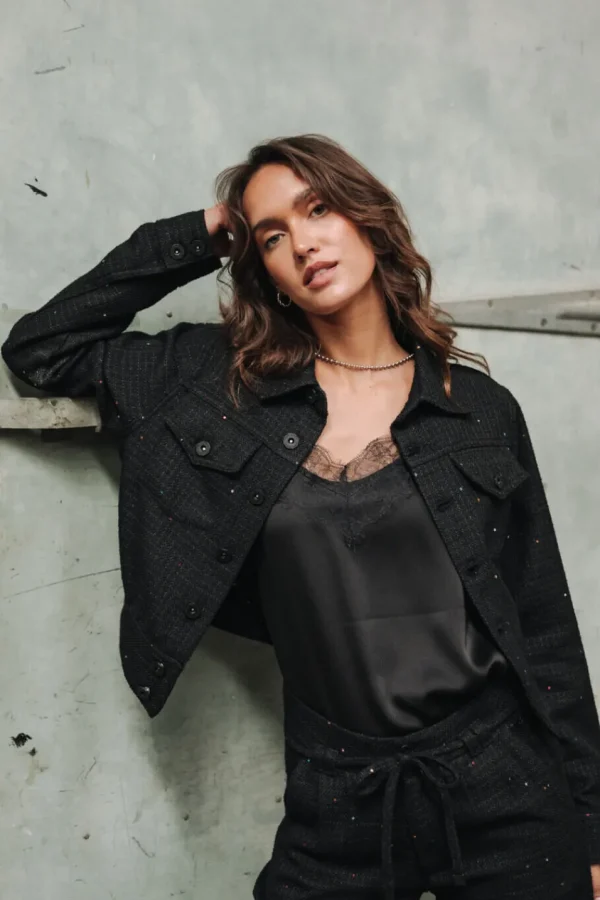 Notre veste Olena Tweedy taille petit, nos stylistes vous conseillent de prendre la taille au-dessus.