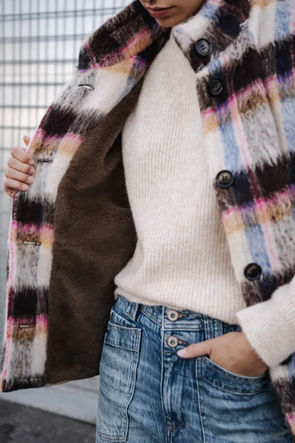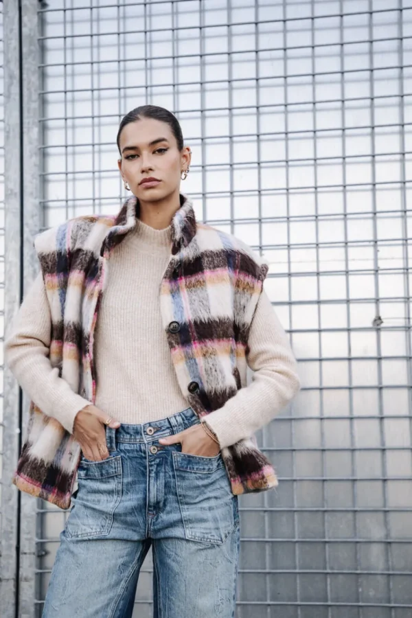 • Gilet sans manches dans un drap de laine à carreaux doux et poilu