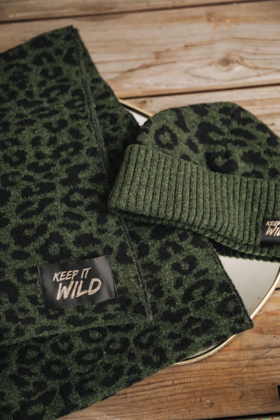 • Bonnet dans une maille douce, jacquard à motif léopard