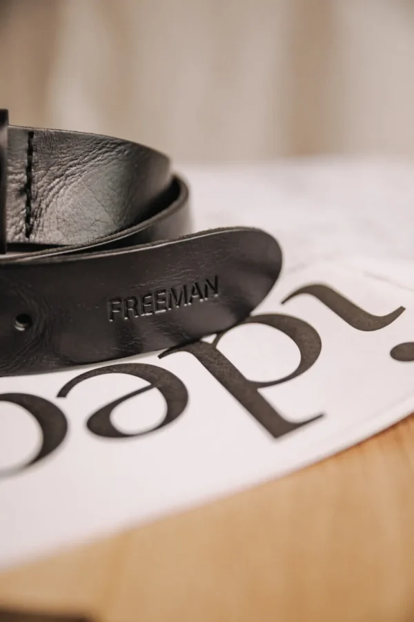 •Logo et nom de marque embossés sur la passant et sur l’extrémité de la ceinture