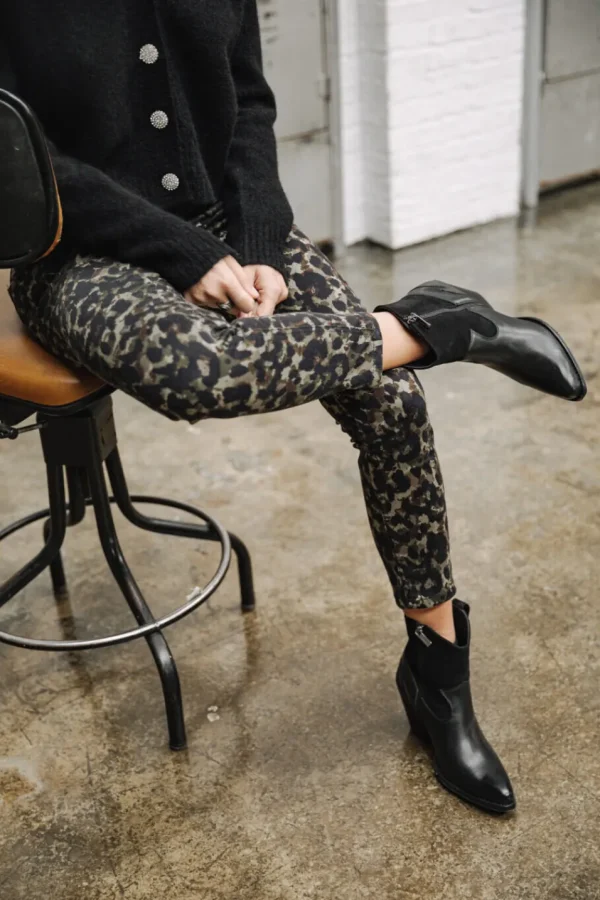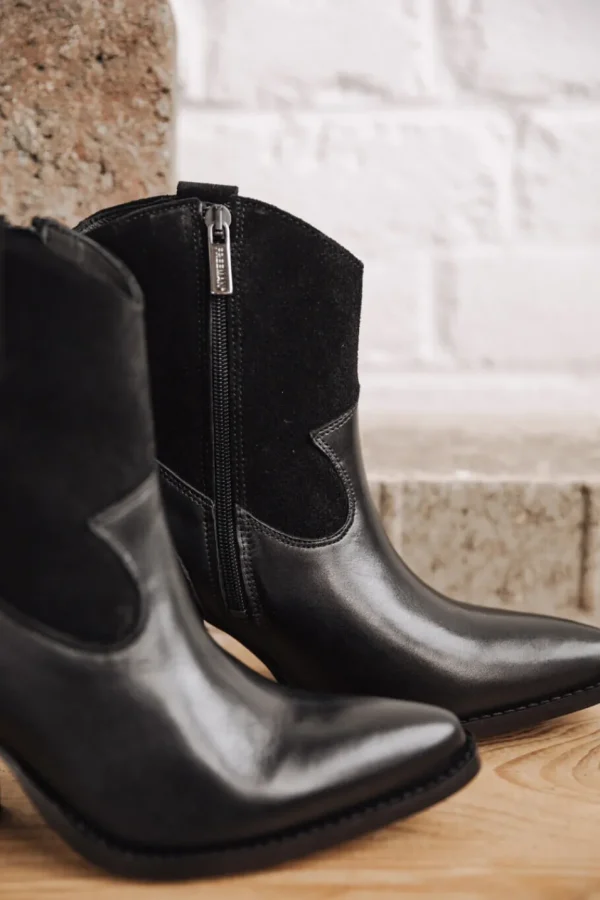 Boots cuir et daim Femme, Black