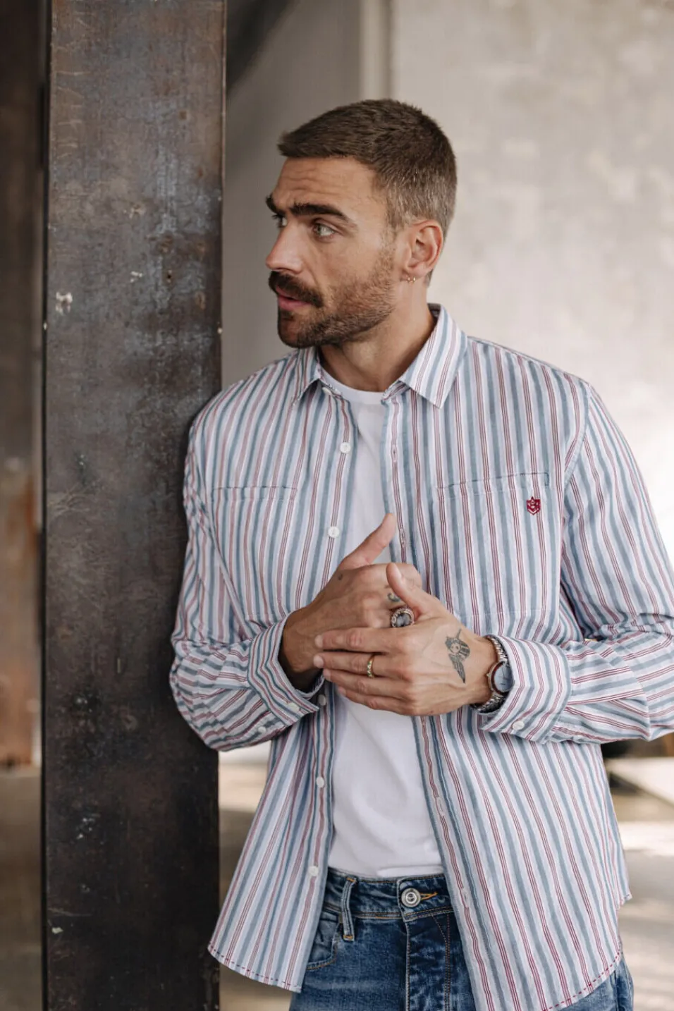 • Poches poitrine passepoilées avec logo brodé