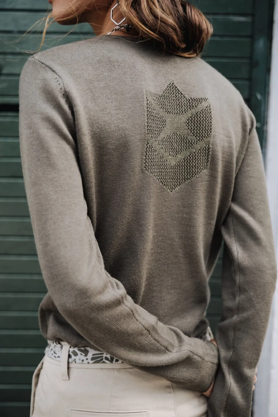 • Icône milieu dos, point « pointelle » dans un fil métallisé