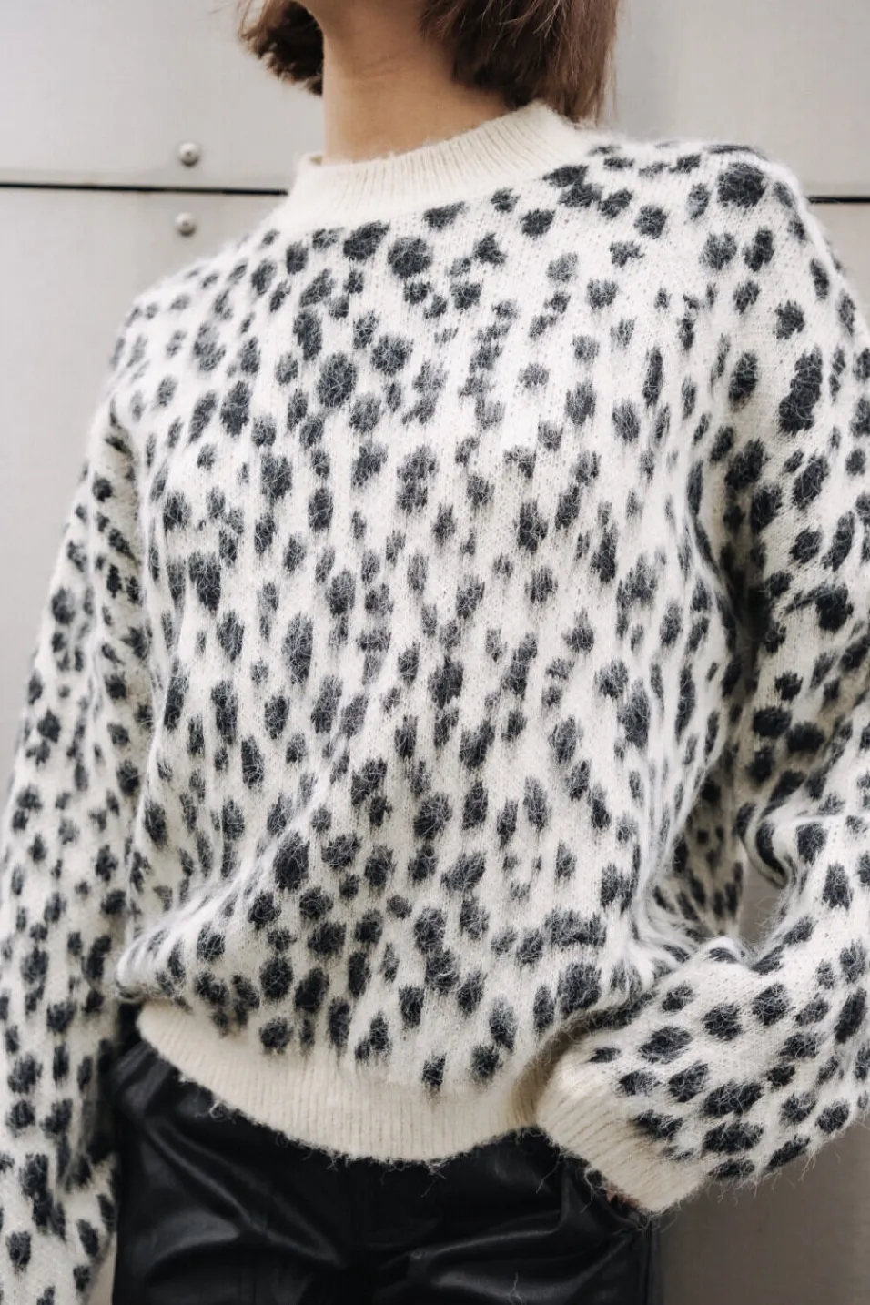 • Pull manches longues dans une maille jacquard chaleureuse et douce à motif animal bicolor