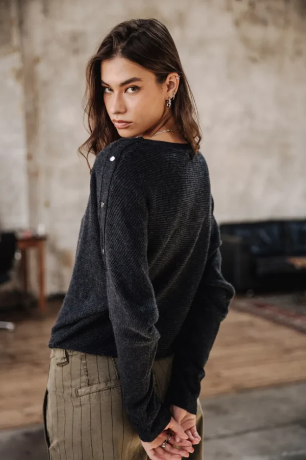 Notre pull Prelie se porte oversize, si vous préférez le porter plus ajusté, prenez une taille en dessous.