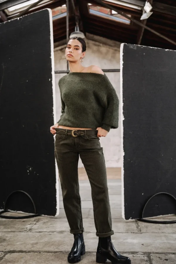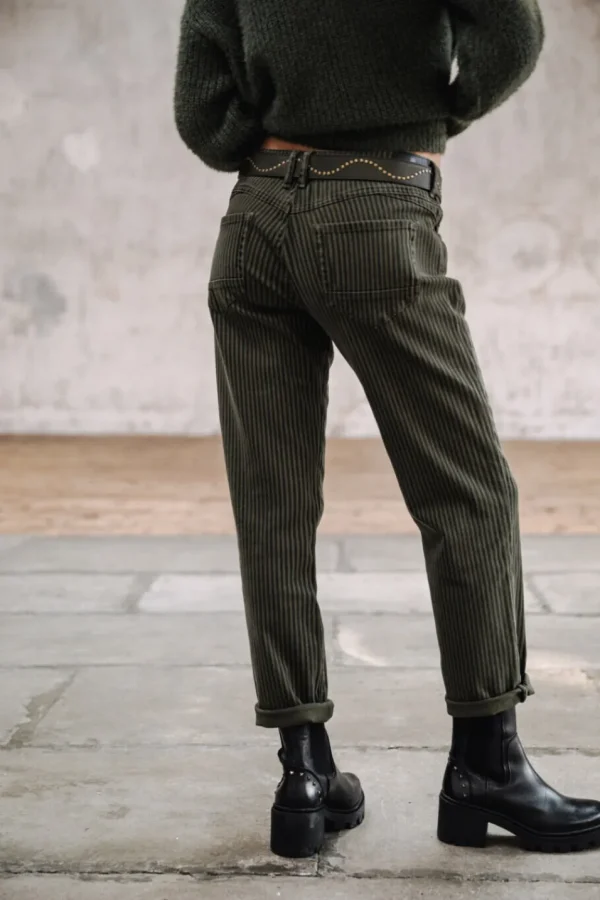 • Matière twill stretch, à rayues dans les tons kaki