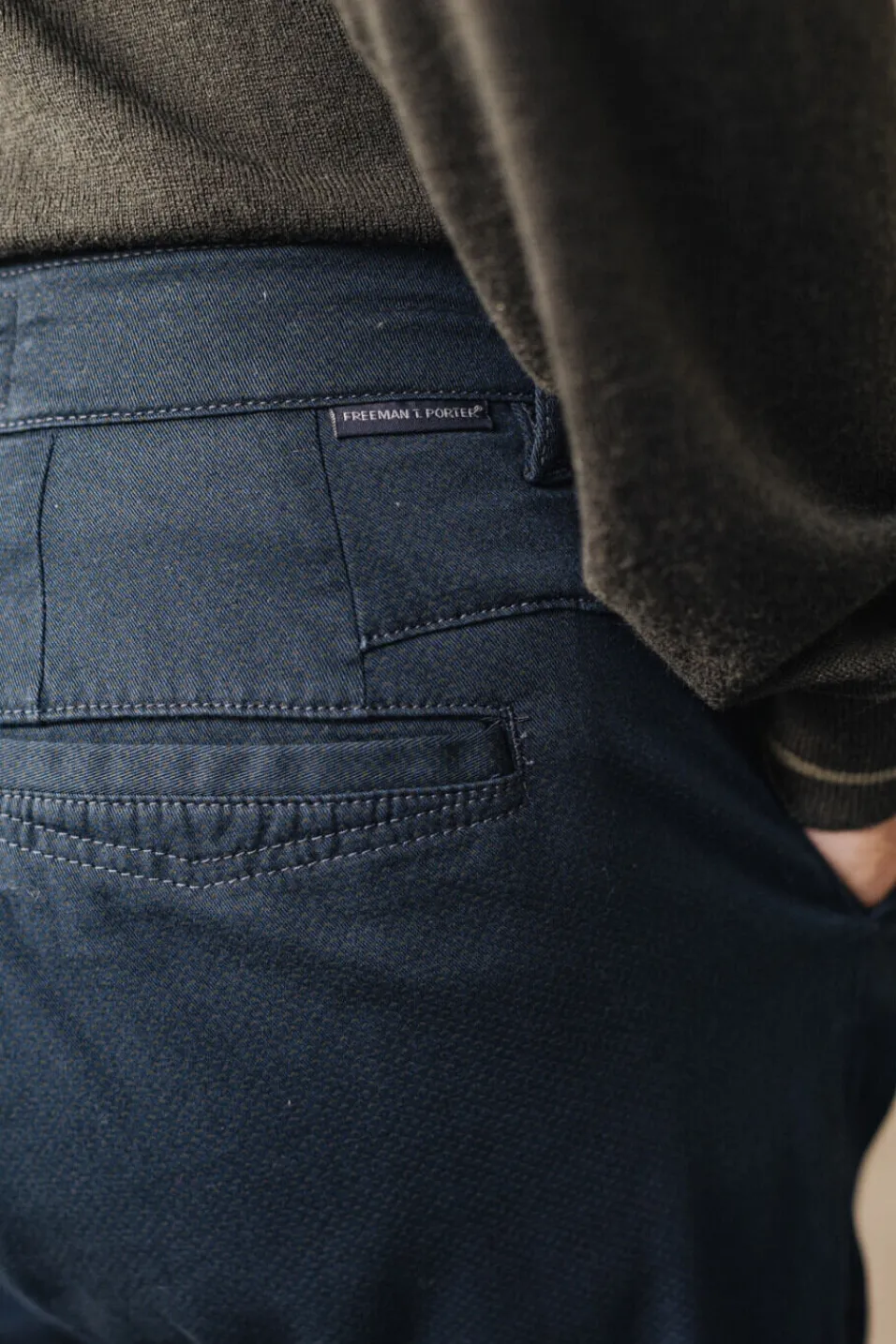 Pantalon chino, coupe tapered (ample aux hanches et cuisses, puis ajustée/slim en bas de jambe)