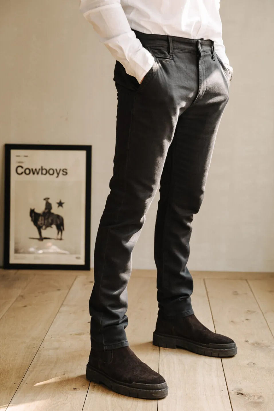 Théo mesure 186 cm et porte une taille 32.
