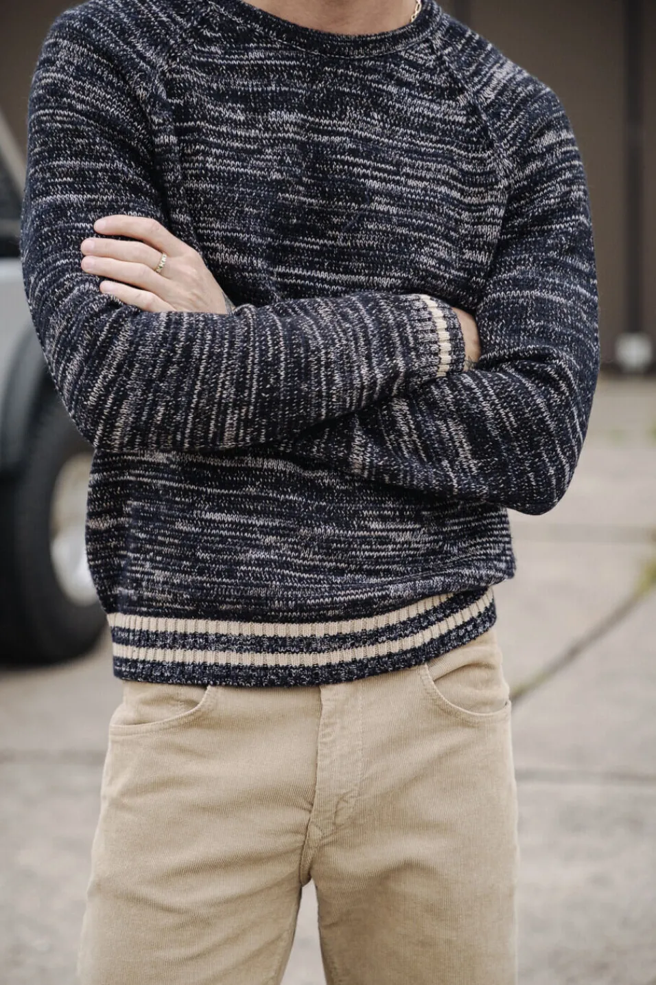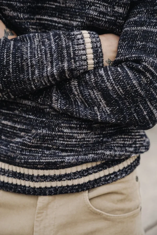Finition bord-côte aux poignets et bas de vêtement avec liseré contrasté