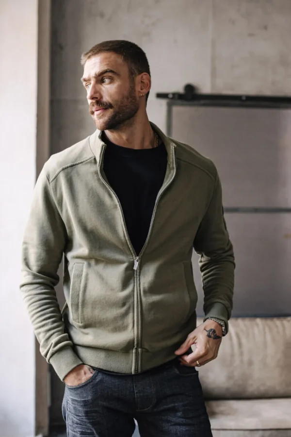 • Bord côte aux poignets, bas de vêtement et poches côtés