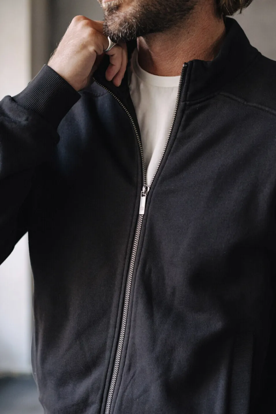 • Bord côte aux poignets, bas de vêtement et poches côtés