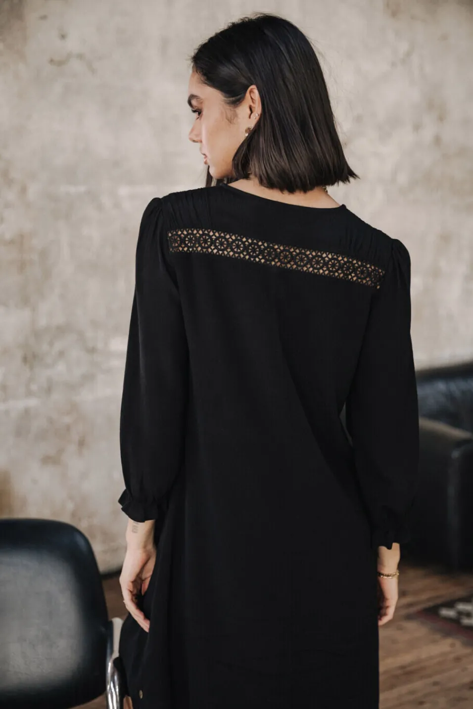 • Robe ample à manches blousantes longueur au-dessus du genou dans un crêpe viscose uni