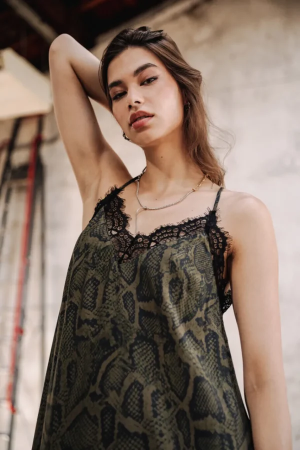 • Tissu viscose fluide et satiné imprimé d’un motif animalier