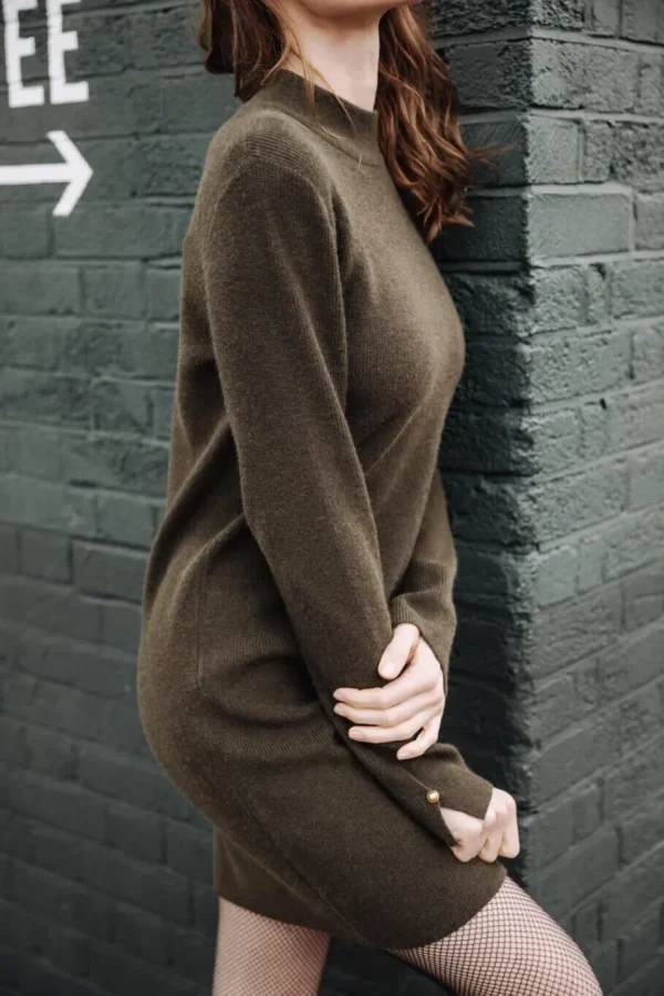 • Robe droite à manches longues dans une maille unie, fine et douce