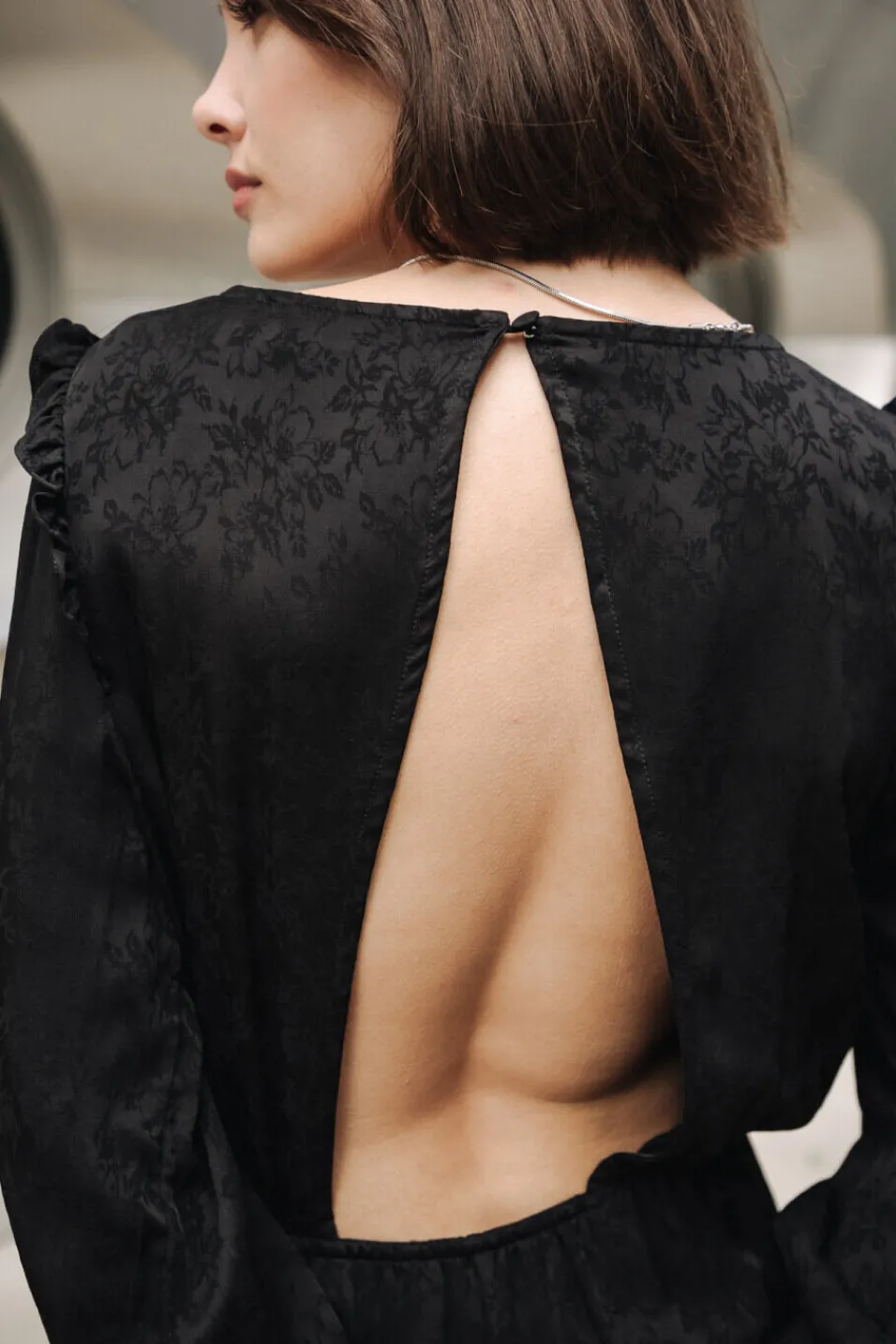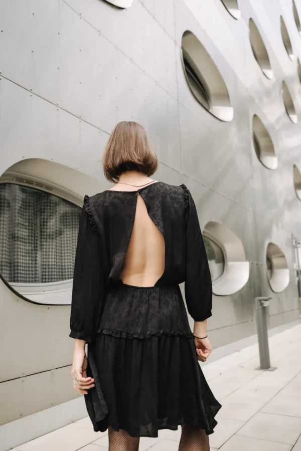Robe à manches longues dans une matière en viscose jacquard unie et fluide
