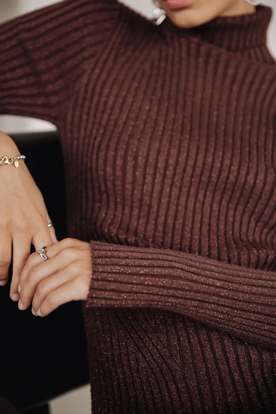 • Robe entièrement côtelée dans une maille fine en lurex