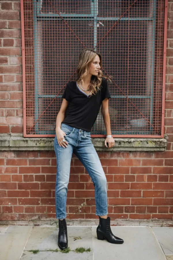 Notre jean Sophy taille grand, nos stylistes vous conseillent de prendre la taille en-dessous.