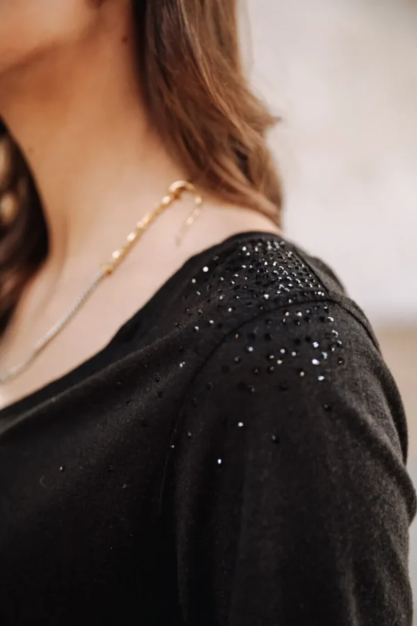 T-Shirt col V Femme, Black