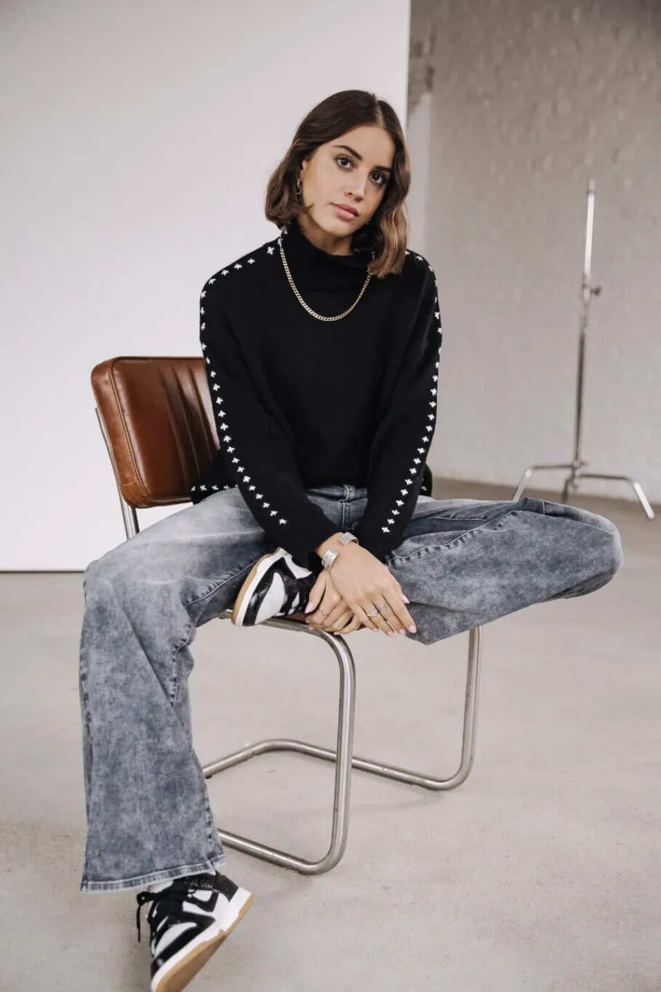 Andrea mesure 175 cm et porte une taille 27.