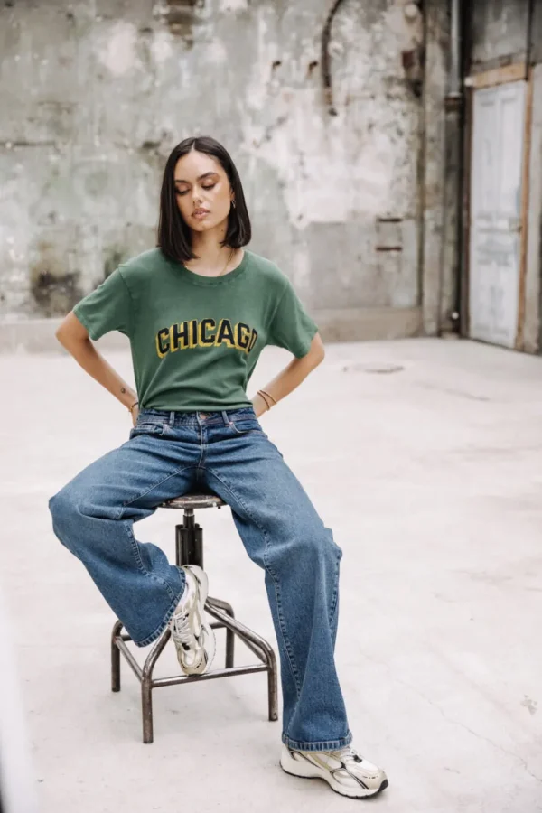 • Coupe large, flare (pattes d’éléphants)• Hauteur de taille normale, effet taille basse