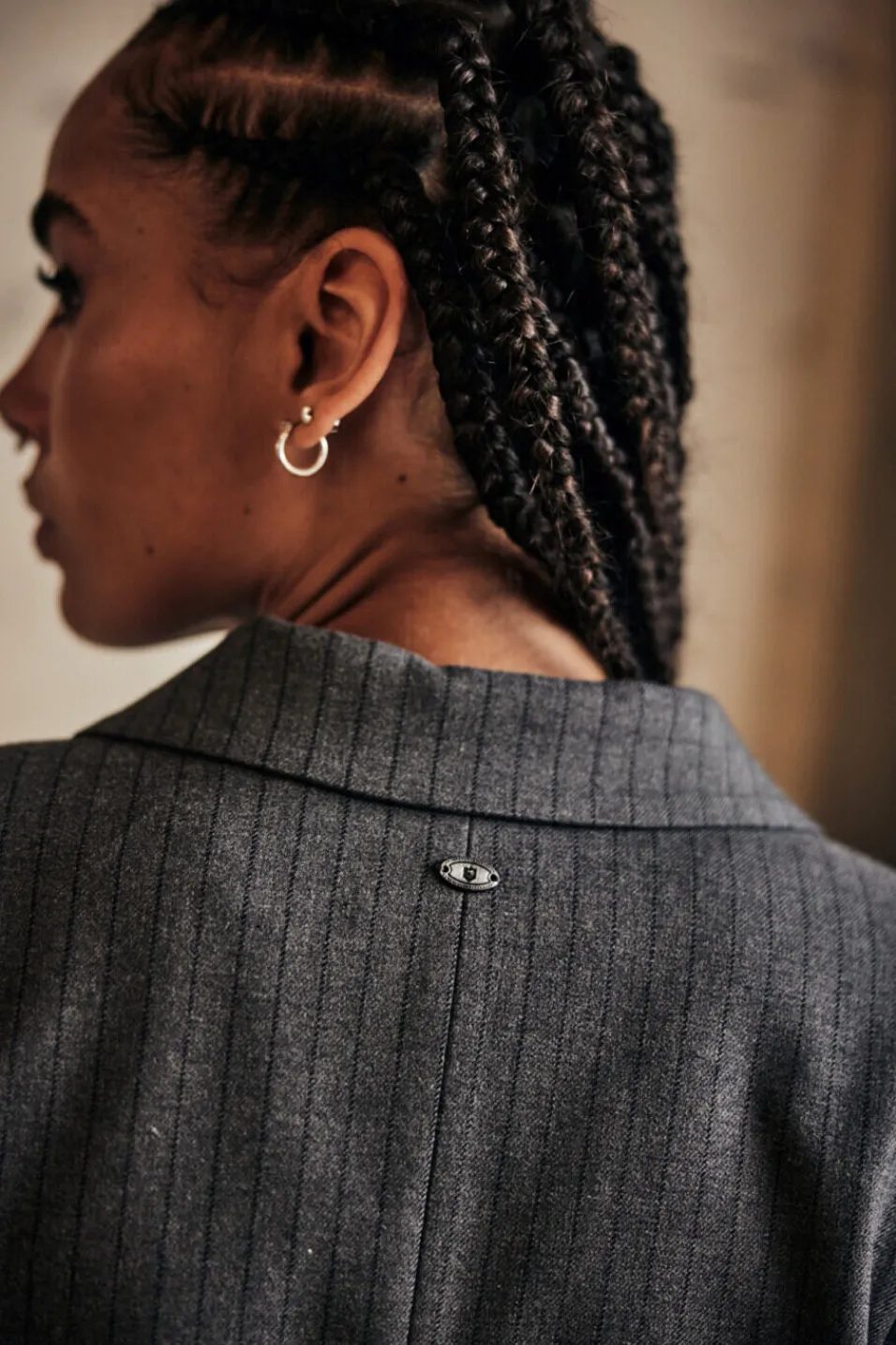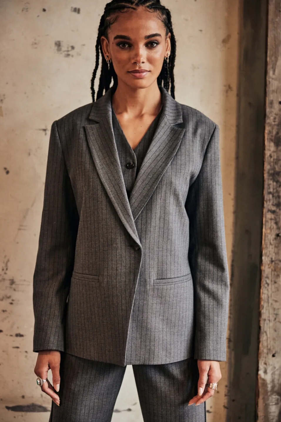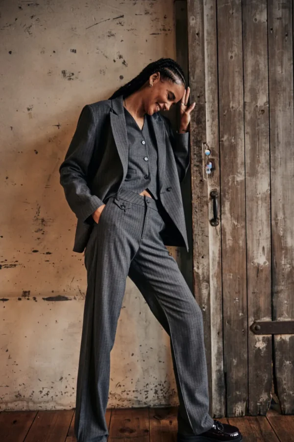 Matière grise légèrement stretch, toucher doux, à fines rayures