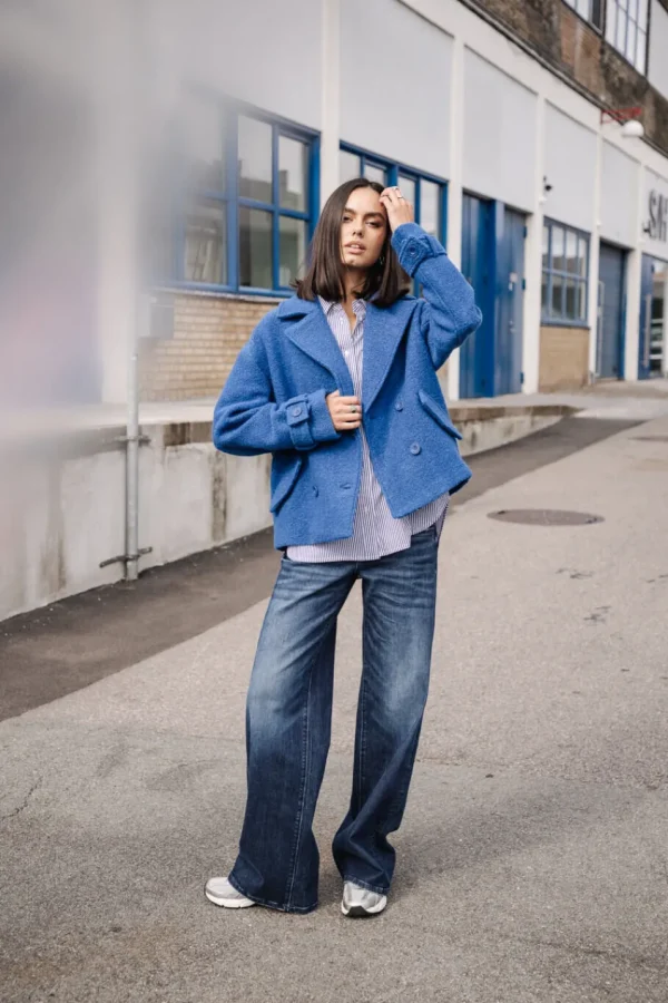 • Veste courte dans une matière en laine bouillie colorée douce et fluide